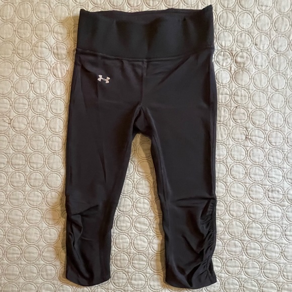 The UA leggings are in perfect condition, light new! They’re perfect fit!🖤 Seller packaged item very nicely!☺️ Thank you!!😊