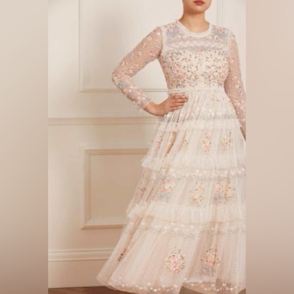 Dress was described as NWT and while it had the tags on it, it's definitely been altered. However, I was able to cut the stitches out without any damage to the dress. Thanks!