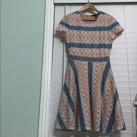 Yay! I know that I fit well in S size of BCBGMaxazaria, but the dress is a great fit for me. There is a slight damage to the lace on the backside of the right shoulder (which I am assuming it came from catching to the strap of bag), but the lace is not destroyed and looks easily mendable. Overall, I am very happy with the purchase💕 Thank you for fast shipment, too. The note and extras weren’t necessary, but I still appreciate it😊