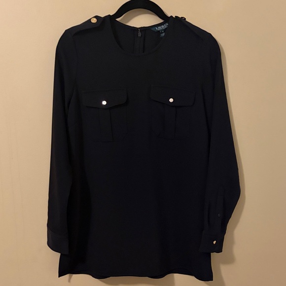 BEAUTIFUL. Super good packaging. Tags attached. Blouse Fits perfectly. No wrinkles odors or smells. Thank you for the additional treasures. Will wear this blouse to a special event on April 2. Love Polo and Lauren clothing.Thank you.