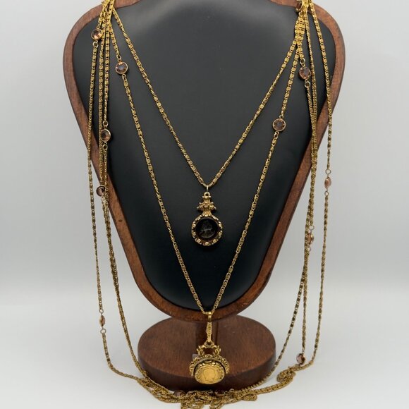 Gorgeous vintage 1960s Goldette NY Greek Meander 5-strand layered chain necklace with 2 pendants.
