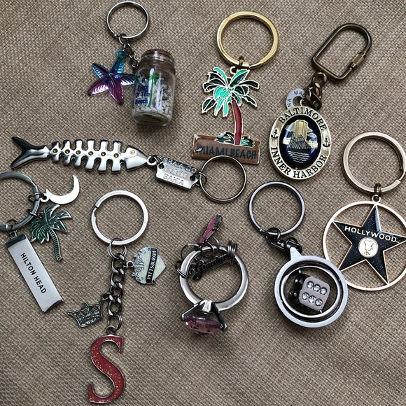 I just got these key rings!!! They are great. I'm from Savannah and we were always going to Hilton Head or Miami Beach!!! I love the Hollywood star!!! The ring with the big pink stone!!! Baltimore Inner Harbour:) too cute!!! So I saw this stuff shopping around where boys were wearing stuff hanging from their belt loops. So you know I ran to Poshmark!!! You guys are so great!!! Than you sooooooooo much!!!