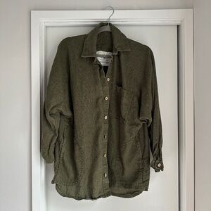 notPERFECTLINEN NPL SARAH Layering Button Down Shirt in Heavy Khaki