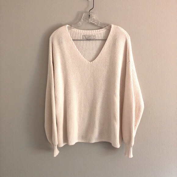 LOFT Sweaters - LOFT Cream Ribbed V-Neck Cotton Sweater