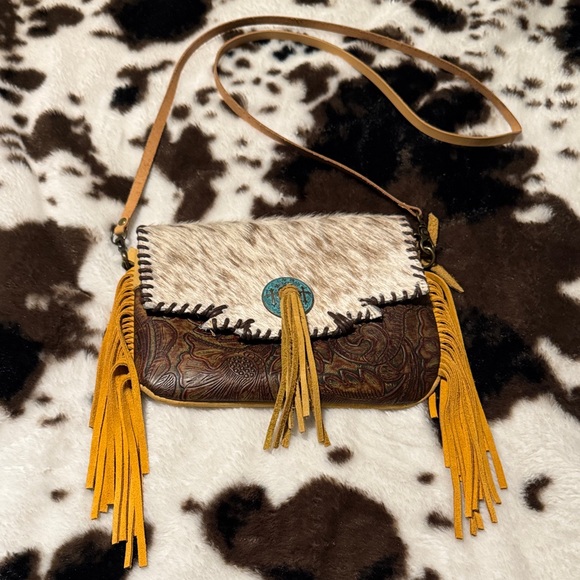 ⭐⭐⭐⭐⭐ EXCELLENT SELLER ⭐⭐⭐⭐⭐ Wonderful experience with this seller! She kindly accepted my offer, which I truly appreciated, and the entire transaction was smooth from start to finish. The beautiful boho Western leather bag arrived quickly, was carefully packaged, and exactly as described. The bag is even nicer in person, featuring beautifully crafted genuine leather with lovely tooled detailing, soft hair-on hide on the flap, and long fringe that gives it wonderful Western character. The turquoise-style concho and tassel add a special touch and make the bag a unique and eye-catching piece. I’m very happy with my purchase and would gladly shop with this seller again. Thank you for a great experience‼️ ♥️