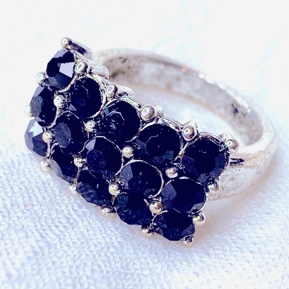 Jewelry - ❣️$25/3❣️ Black Rhinestones Silver Plated Ring