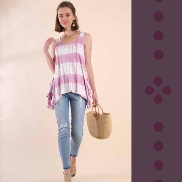 Umgee Tops - Tie Dye Ruffle Hem Tunic Tank Top Purple