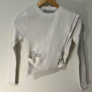 ZARA cropped rib tie waist sweater