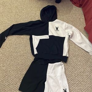 Playboy tracksuit, shorts and a sweater, size small