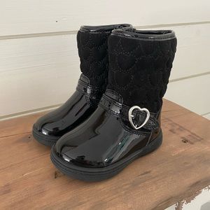 Carter’s size 4 riding boots. Black heart pattern upper and shiny lower.
