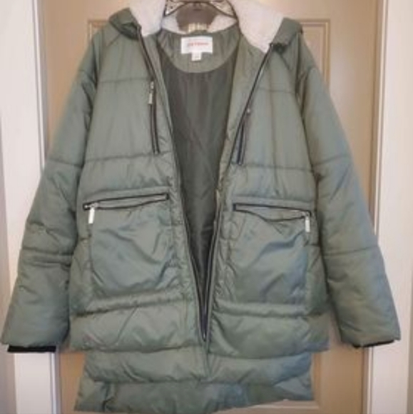 This jacket is lightweight but warm and I love the colour! It arrived in perfect condition. Thank you.
