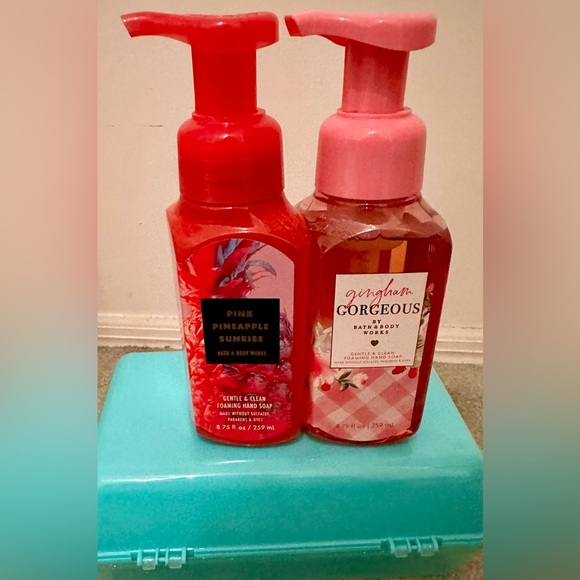 Very pleased with my purchase. The B&B Works Pink Pineapple Sunrise & Gingham Gorgeous Foaming hand soaps arrived promptly, exactly as described, and were packaged with care. The red Clares wallet was a surprise treat! Thank you for a smooth and pleasant transaction.