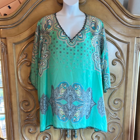 Beautiful silk blouse arrived in great condition with careful packaging and fast shipping. I recommend this seller and would gladly do business with her again. Thank you for the great experience!