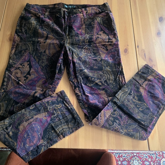 Wonderful paisley pattern with quick shipping and packaging. The pants are perfect quality with velvet feel very soft.