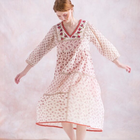 Thank you so much for offering this dress. I had a shirt and one of the fabrics and it was too large for me. I was so excited when I realized that the star pattern fabric was in this dress. I am so delighted. Thank you.