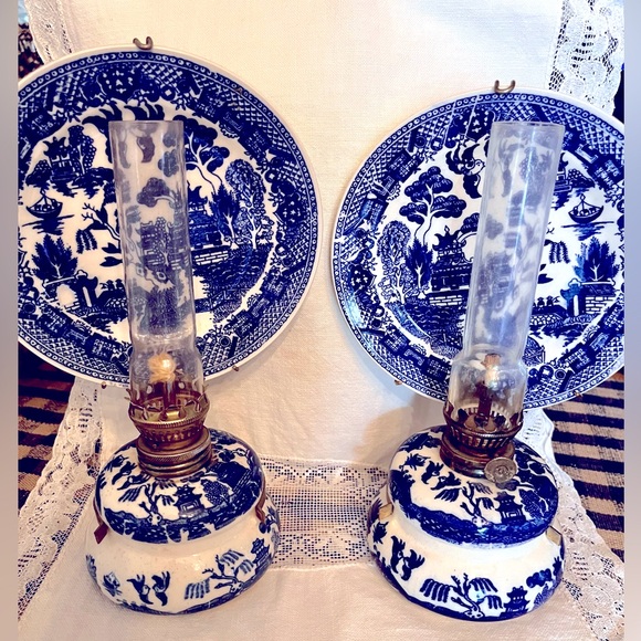 🙏 Oh Miss Julia --- you just made my day after receiving my order of this pair of ABSOLUTELY SPLENDID Blue Willow Oil Lamps including reflectors & chimneys which arrived today. All are PERFECTLY intact thanks to your gentle/gingerly packed care! They are more STUNNING than imagined and are sitting with all my other collection. I always appreciate your GRACIOUS GENEROSITY in sharing your BEAUTIFUL TREASURES and today is no exception. I am TRULY BLESSED to have them and GRATEFUL for you offering them on POSHMARK. THANK YOU for your KINDNESS in taking the time to write me a card and share your sentiment. I am especially blown away with the GORGEOUS little tree in the mini Blue Willow you gifted me. What a pleasant and uniquely YOU SURPRISE! 🫂 My whole obsession with Blue Willow started as a child with a miniature version of the china set in BW design (which is sotting in a small showcase in my kitchen)! I know it's a little thing though I want you to know you are always so thoughtful, your kindnesses do not go unnoticed, and you make my heart full! ❤️ I'm sending all my best well wishes, chants, prayers, and blessings to you. Heartfelt ❤️ thanks, Diane 🪷