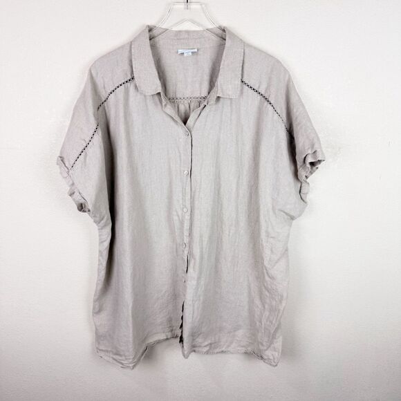 Beautiful linen blouse arrived in great condition with careful packaging and fast shipping. I recommend this seller and would gladly do business with her again. Thank you for the great experience!