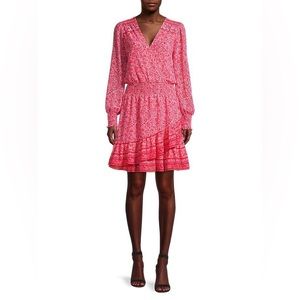 Eliza J Floral Mockneck Tiered Mini Dress, size 8