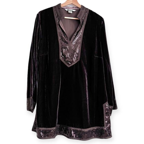 I am very happy with the quality and elegance of this tunic. The Color The Sequins The Velvet. Nice !!!! VERY
