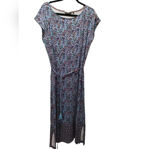 Pretty Boden midi dress with a sky blue background and delicate floral print. The column fit is flattering and it fits very well. While the side slits and tassel tie aren’t my usual style, it pairs beautifully with a Boden cashmere sweater I already own and I’ve already gotten some wear out of it. Lovely lightweight dress for spring and summer.