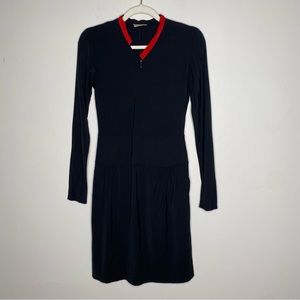 EMPORIO ARMANI Black Wool Blend Mini Dress with Red Collar - Size 4