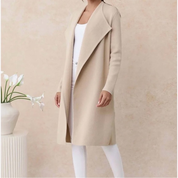 I'm thoroughly impressed with this long beige cardigan sweater - it's more than I expected and of great quality! Not too heavy but warm enough! The delivery was prompt, and the packaging was excellent. I loved it. Thanks!