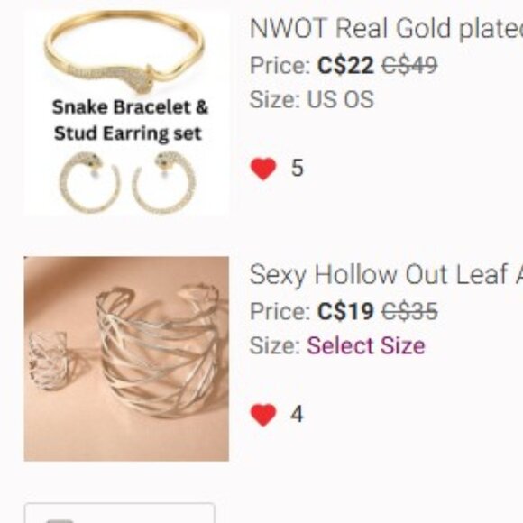 Beautiful bracelets, one with a ring, the other with beautiful stud earrings. As described, Wrapped in festive red tissue paper like Christmas gifts. Shipped within an hours of order. I’ll certainly visit this closet again.