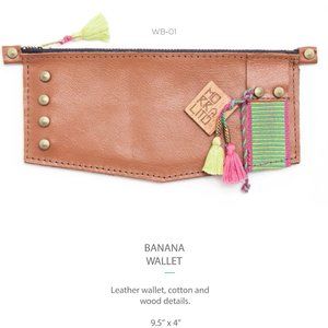 Ethnic Full-Grain Banana Wallet with Cotton, Wood accents and Adorned with Brass
