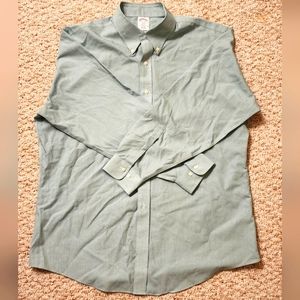 Brooks Brothers Men's Green and White Checkered Shirt Size "17.5"