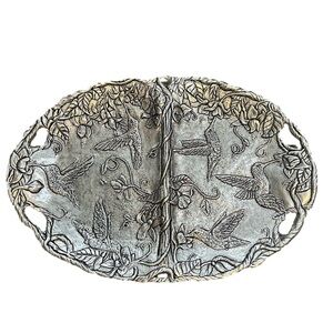 Silver Tone Metal Storage Box With Hinged Lid 11”