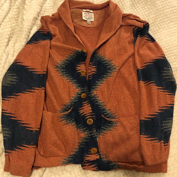 Hi Really like this sweater The burnt orange/blue will be great w wranglers. Cotton comfortable and light weigh to layer. Thanks