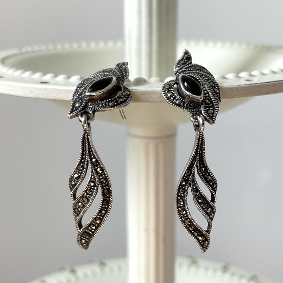 Wonderful sterling silver Black Oynx and Marcasite earrings. They look more like Art Nouveau than Art Deco to me. Love them!