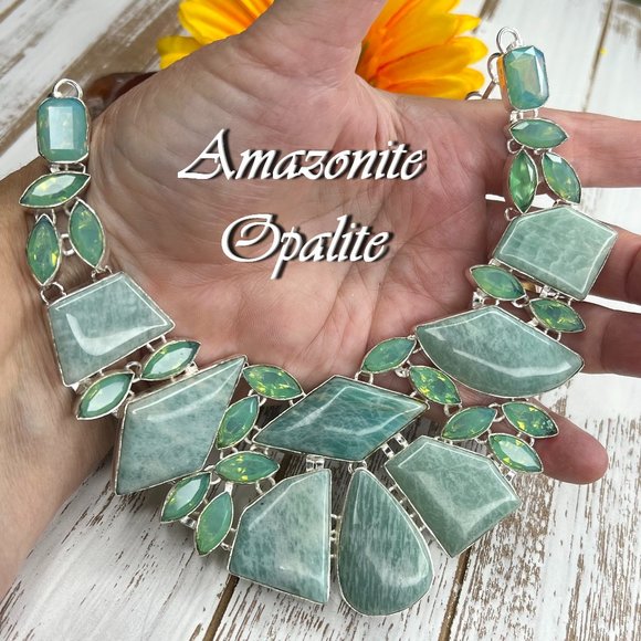 Exquisite sterling silver Amazonite Opalite necklace with a matching bracelet. "uniquelychicbou" has done it again. Thank you for the matching bracelet. Merry Christmas and a happy New Year.
