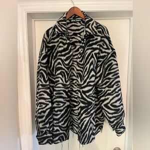 Men’s Palm Angels zebra fuzzy shirt jacket.