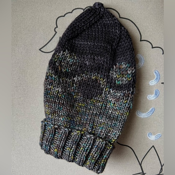 It is so beautiful and I just found out that the seller knit it by hand!! Phenomenally talented artist and craftperson!! This is so unique and beautiful but also the MOST COMFORTABLE beanie I have and I have quite alot of them. The way she knit it makes it so softly flexible - hard to describe until you put it on and there is no pressure at all around your head - a real dream you don't even know you're wearing it.