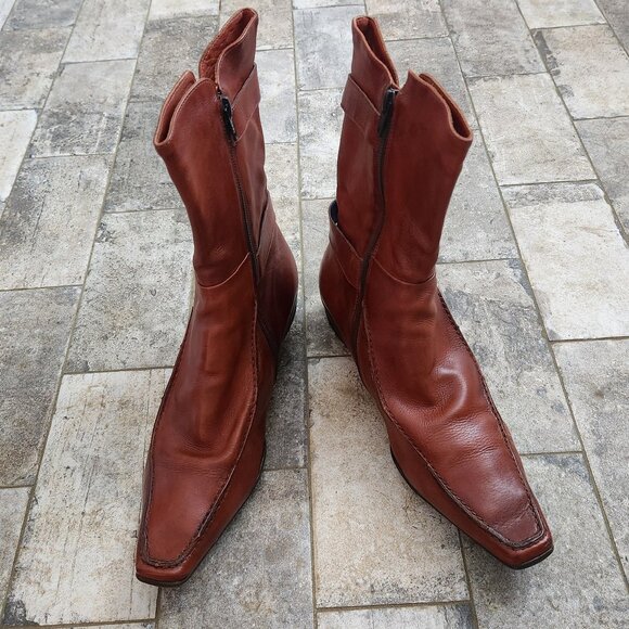 I love the boots! They're in great condition with just enough "patina" and softness to look cool and funky. I appreciate the packaging and the note. Thanks so much!