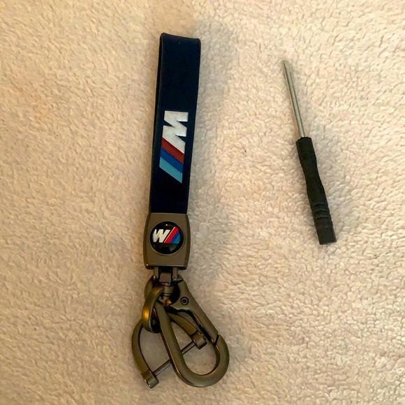 In the picture it looks black but the strap is actually navy blue. Item looks good. The description did say blue and red and I thought it was the M colors. I would buy again from this seller.