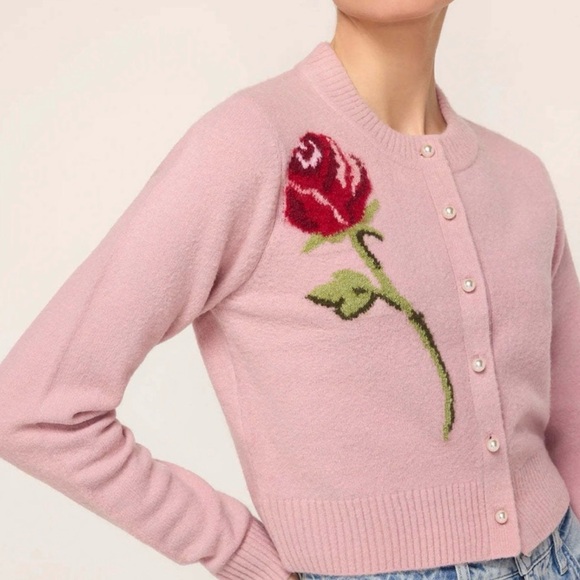 BEAUTIFUL House of Harlow Pink Rose Cardigan. SO HAPPY with my purchase. VERY FAST Shipping!!!!!!!!!!!!!!! Thank you!