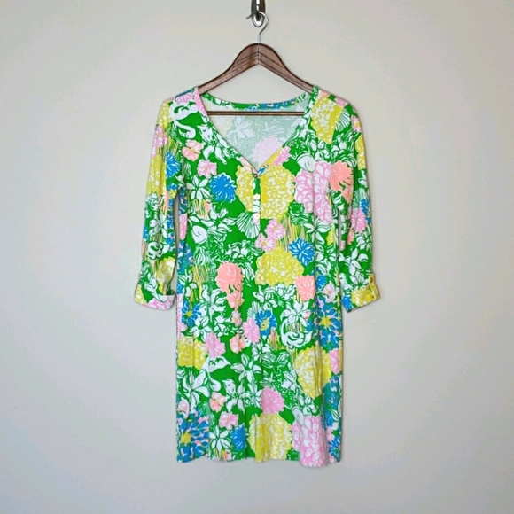 Dress arrived exactly as described. Beautiful colors and perfect for summer!