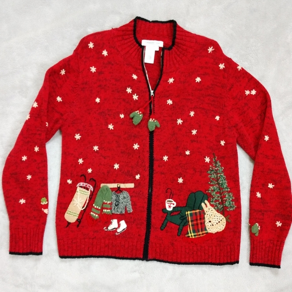Coldwater Creek Sweaters - Coldwater Creek Red Vintage Holiday Sweater Cardigan Sz M