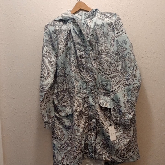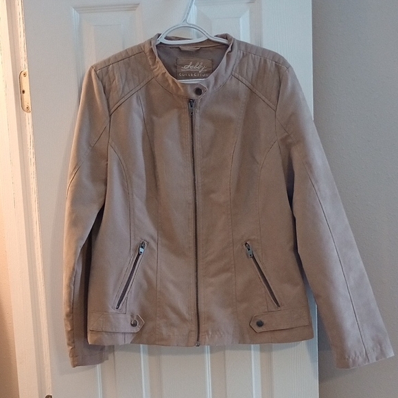 Love this jacket. Wore it today and looks great on. Prettier in person and fast delivery. Would by again from this seller