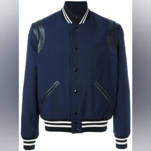 SAINT LAURENT Teddy Jacket in Navy Gabardine Wool (Size 46)