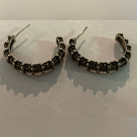 Jewelry - Vintage 925 Sterling Silver Marcasite Half Hoop Earrings