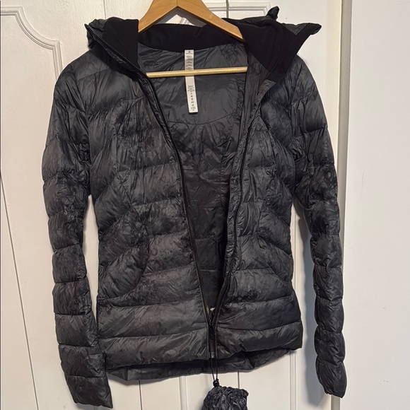 In perfect condition. Nice light jacket but the color was described as black. The color is actually grey with a splotchy a black motif.