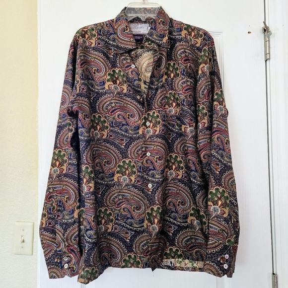 Gorgeous. The look and feel of the silk is just wonderful. I’m marrying a rock and roll musician and this is going to be perfect to wear with his red velvet tux on our wedding day. It was so hard for me to find a paisley shirt in these exact colors we needed, but by the grace of this universe, I found your posting. 🌹❤️Thank you so much. ❤️🌹