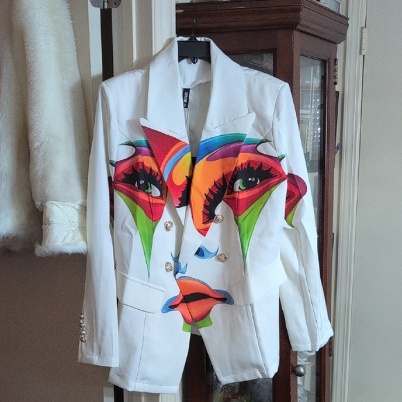 Just opened my purchase if the colorful face art blazer..its a perfect fit..absolutely love love love it..ps thanks for the extra gift..packaged nicely ..will shop your closet again.