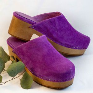 Charlotte Stone Martino Wooden Clogs in Orchid - Women's size 8 - purple suede