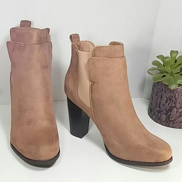 Nature Breeze Shoes - 🆕 Taupe Chelsea Boot Faux Suede Chunky Heel 🆕