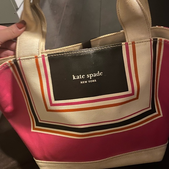 It is exactly as advertised, small than I thought but that’s just me I’ve learned Kate Spade canvas bags withstand the washing machine wonderfully. We’ll see how this one turns out