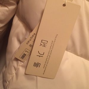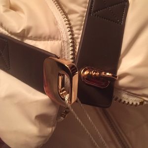 All white plush coat with gold buckle on collar ๐ stay warm in style! Gold buckle and gold zippers. Brand new never been worn! ๐ size medium but can pass as small.